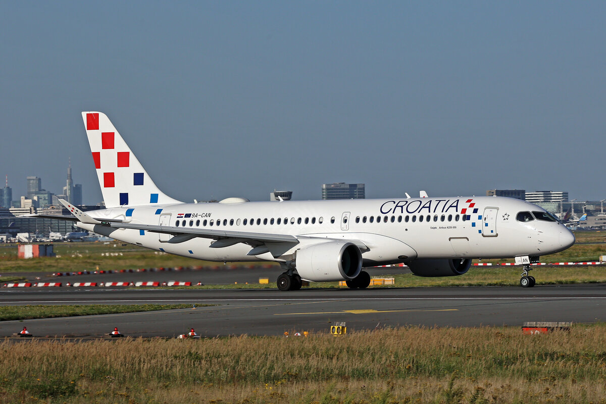 Croatia Airlines, 9A-CAN, Airbus A220-371, msn: 55363, "Osijek", 11.August 2025, FRA Frankfurt, Germany.
