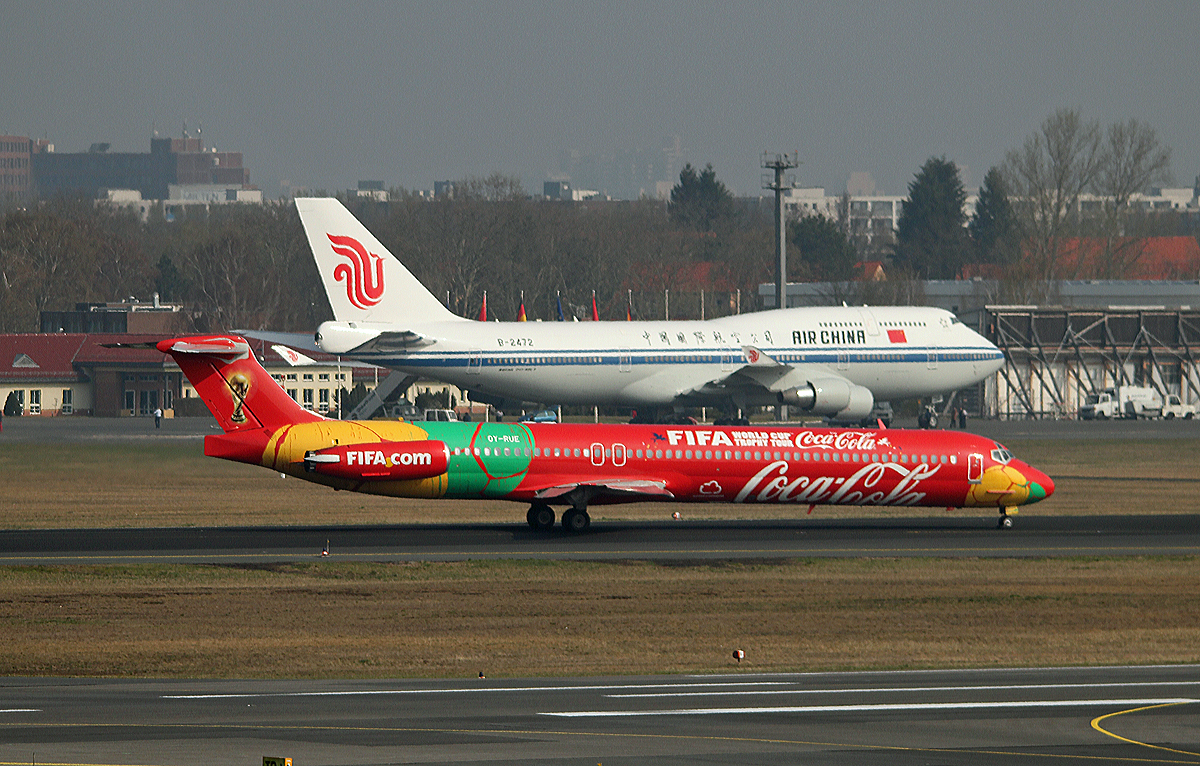 Fünf Flugzeuge sind auf diesem Foto: Links im Bild startet eine Douglas DC3 "Rosinenbomber" von Air Service Berlin, auf dem Rollfeld stehen: Dornier Do-228 D-CFFU von DLR Flugbetriebe und Danish Air Transport (DAT) Aérospatiale ATR-72-202 OY-RUB sowie Deere & Company Gulfstream V N600JD; von rechts kommt die soeben aus Wien als Flug OS 215 gelandete Austrian Arrows DHC83 OE-LTN gerollt; Dresden-Klotzsche, 09.05.2008