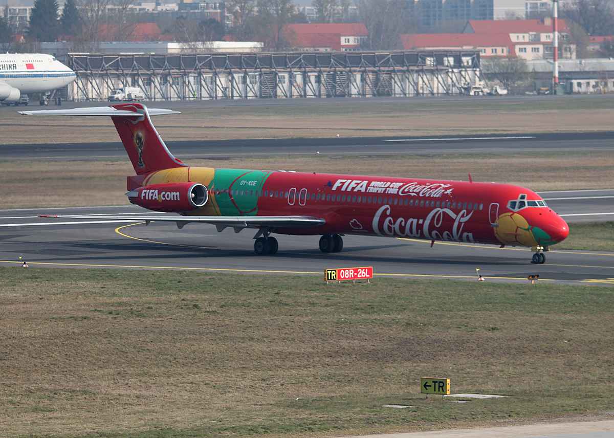 Danish Air Transport (DAT) Aérospatiale ATR-72-202 OY-RUB hat zum Flug DTR 4571 nach Salzburg abgehoben, am Boden steht Dornier Do-228 D-CFFU von DLR Flugbetriebe; Dresden-Klotzsche, 09.05.2008
