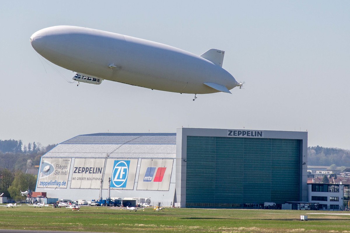 Zeppelin LZ N07 (D-LZFN), mit Werbung für den Europa-Park, der Deutsche Zeppelin Reederei (DZR) fliegt über den Bodensee in Konstanz.