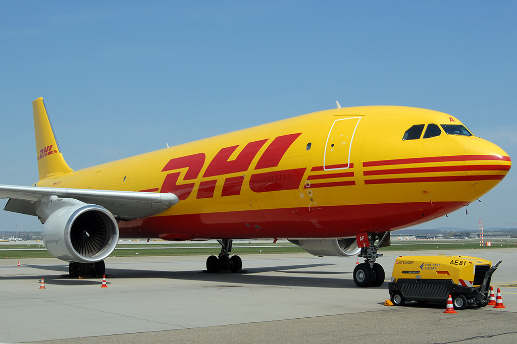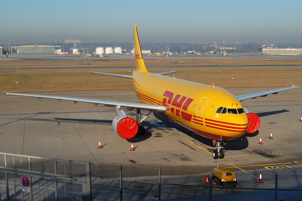 Eine Boeing 767 der DHL Aviation fliegt über Dieskau (Gemeinde Kabelsketal). [4.2.2018 | 13:32 Uhr]
