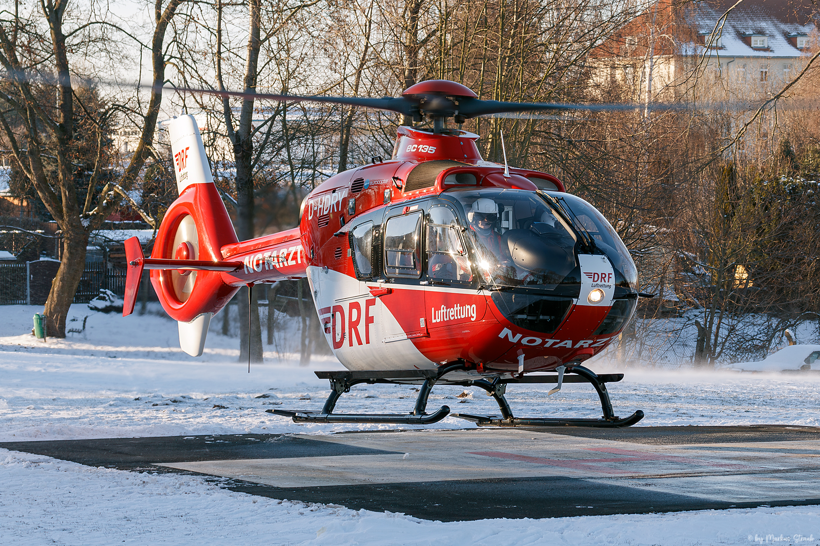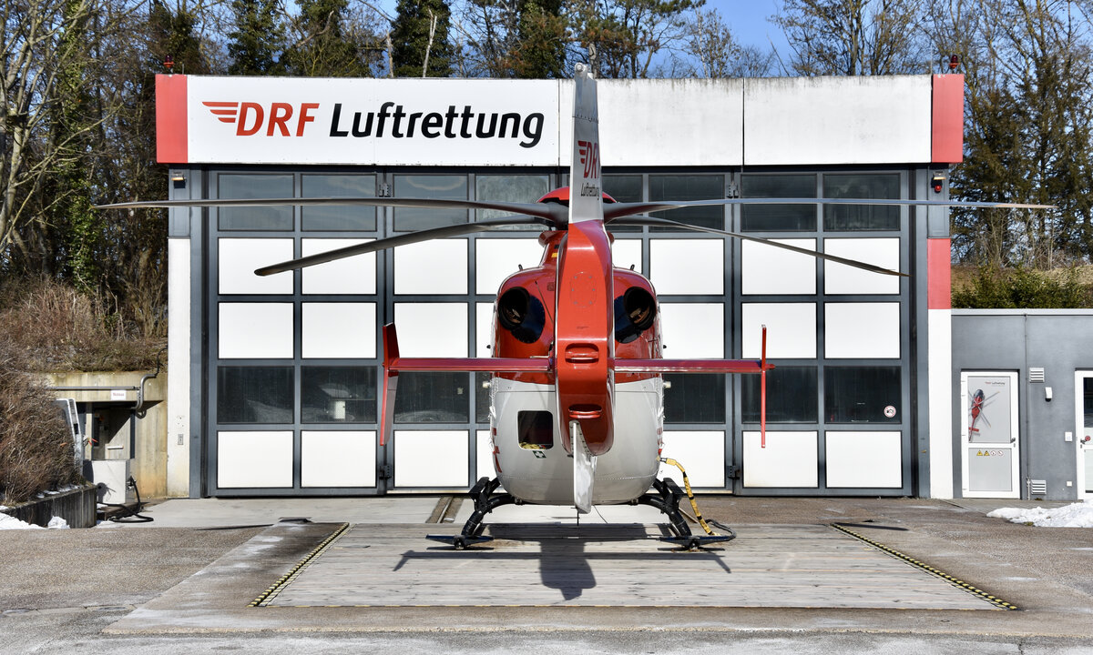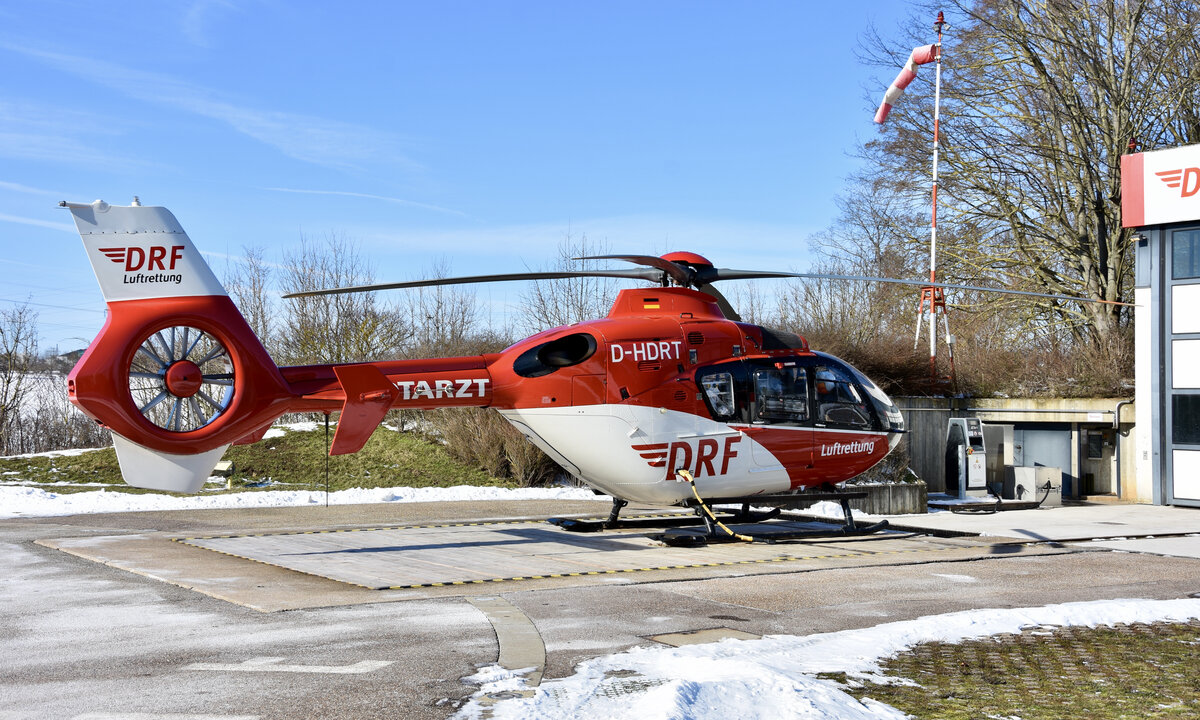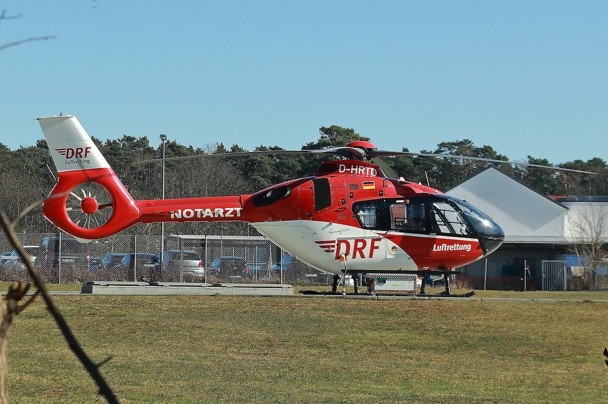 DRF Luftrettung mit einem Airbus Helikopters (Eurocopter) H-135 (D-HRTD) am 07. März 2022 wartet nahe dem Gelände / Flughafen des Helios Klinikum Bad Saarow auf den nächsten Einsatz. Klaus-P. Dietrich