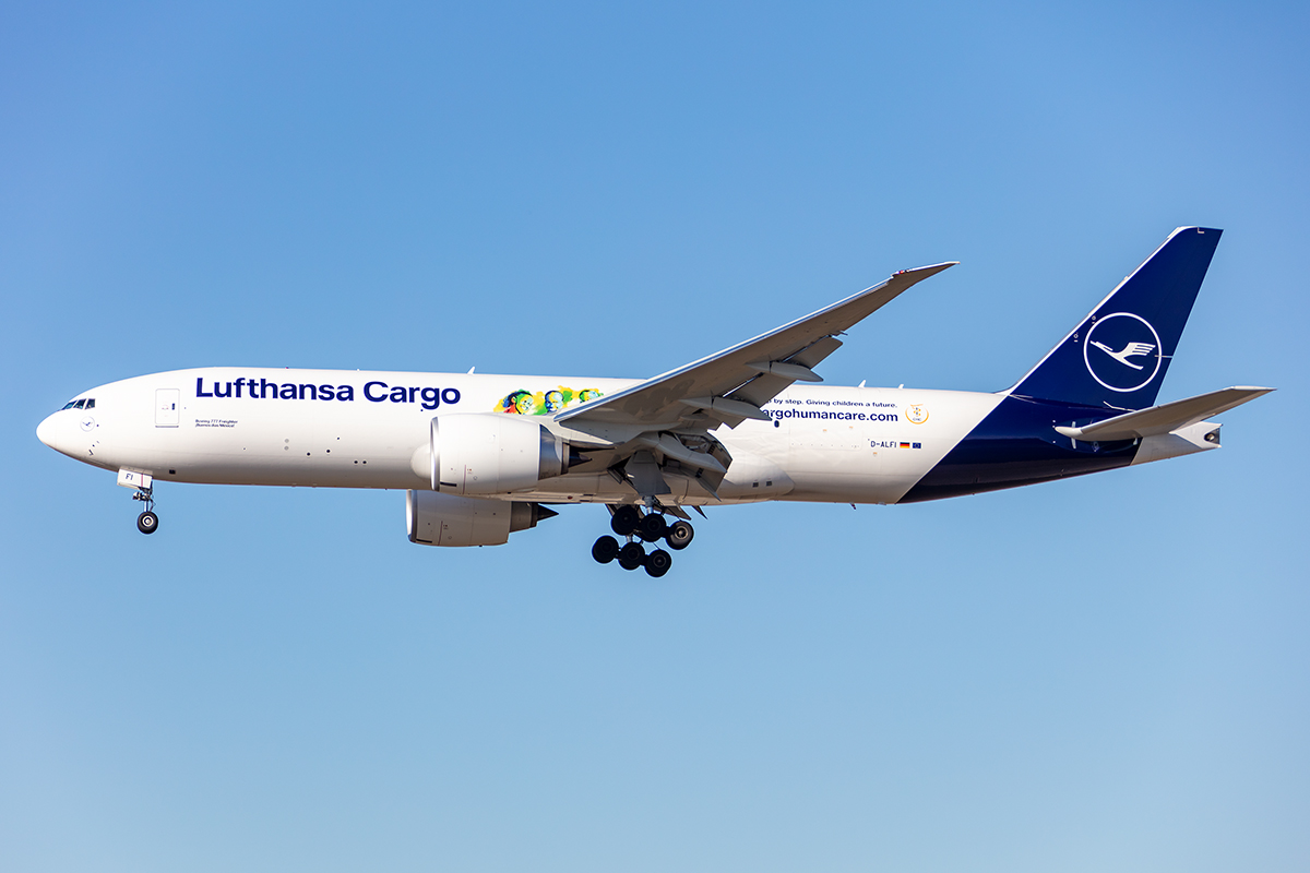 Lufthansa Cargo, D-ALFA, Boeing B777-FBT, msn: 41674/1144,  Good Day USA , 12.August 2025, FRA Frankfurt, Germany.