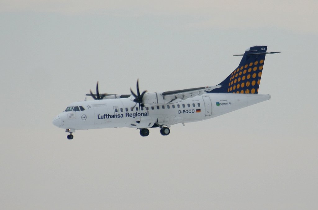 Lufthansa Regional (Contact Air) ATR-42-500 D-BQQQ kurz vor der Landung in Stuttgart am 10.03.2010
