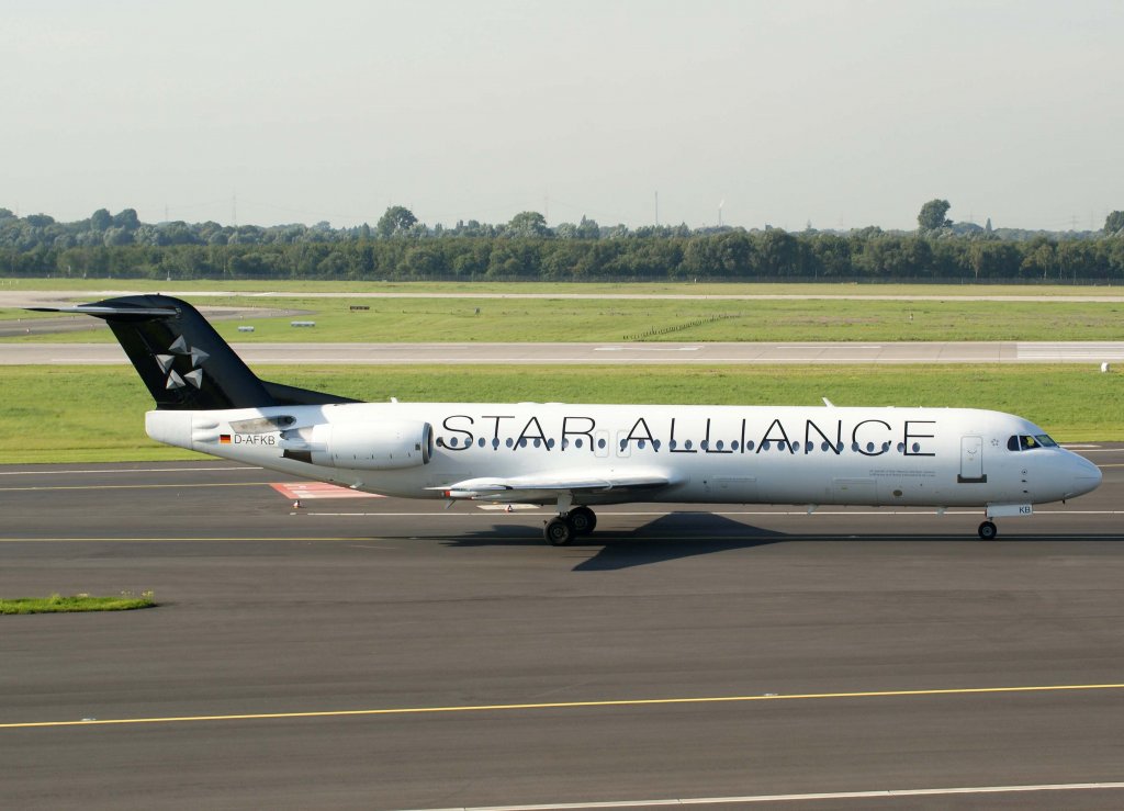 Fokker 100 D-AFKA der Contact Air im STAR ALLIANCE Design in DUS.