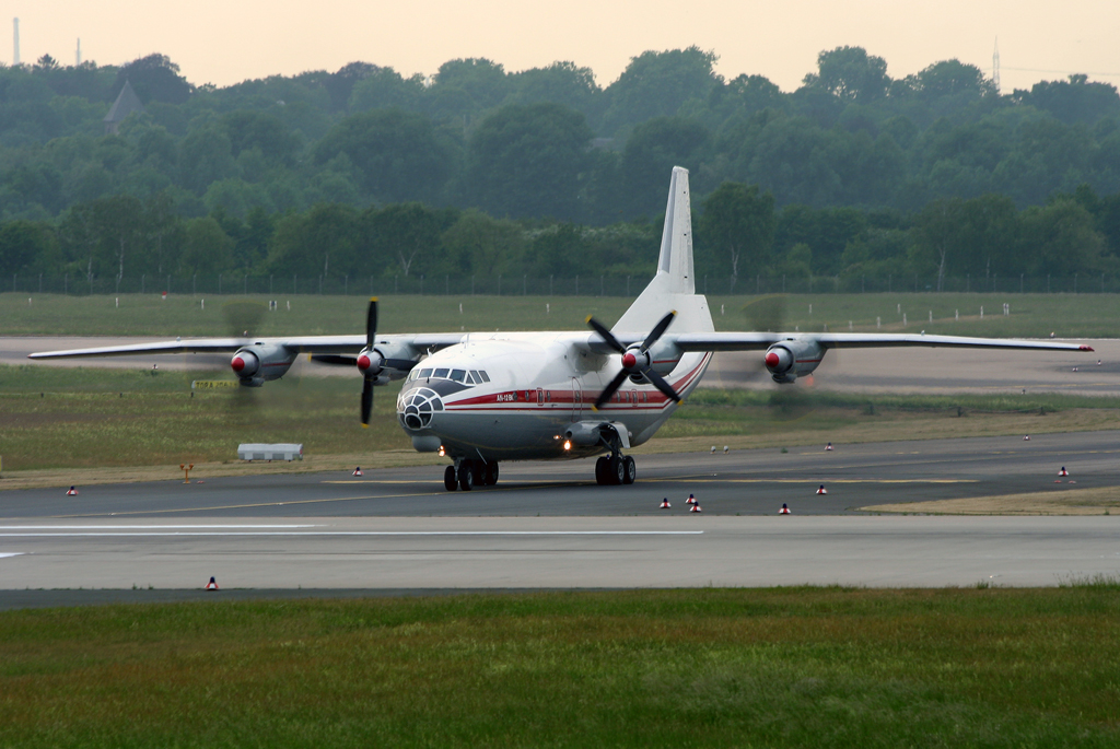 Meridian An-12 UR-CAH überquert die 05R in DUS / EDDL / Düsseldorf am 19.05.2011