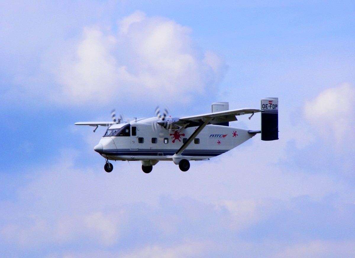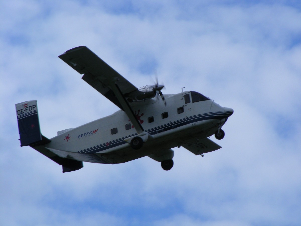OE-FDP, Short SC-7 Skyvan, im Endanflug auf den Flugplatz Gera (EDAJ) am 1.5.2015