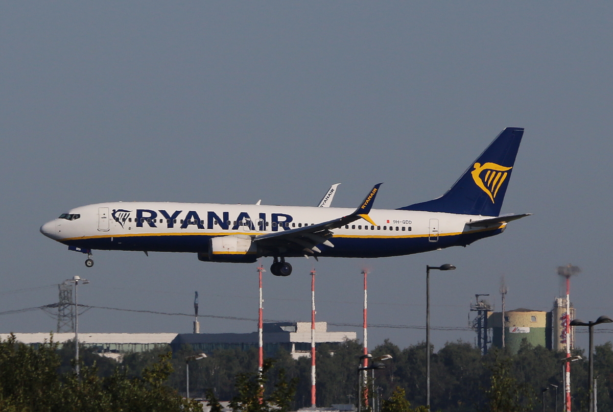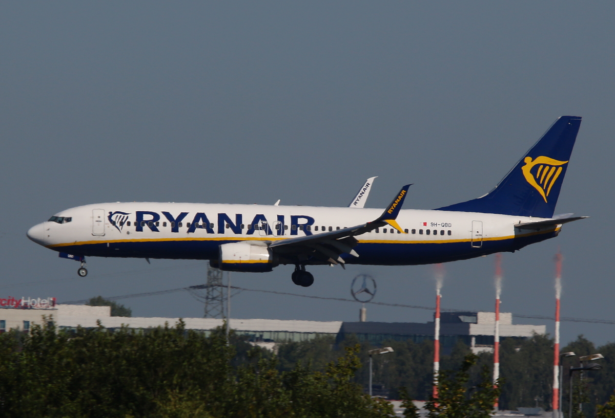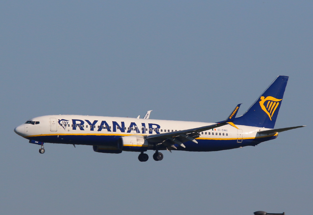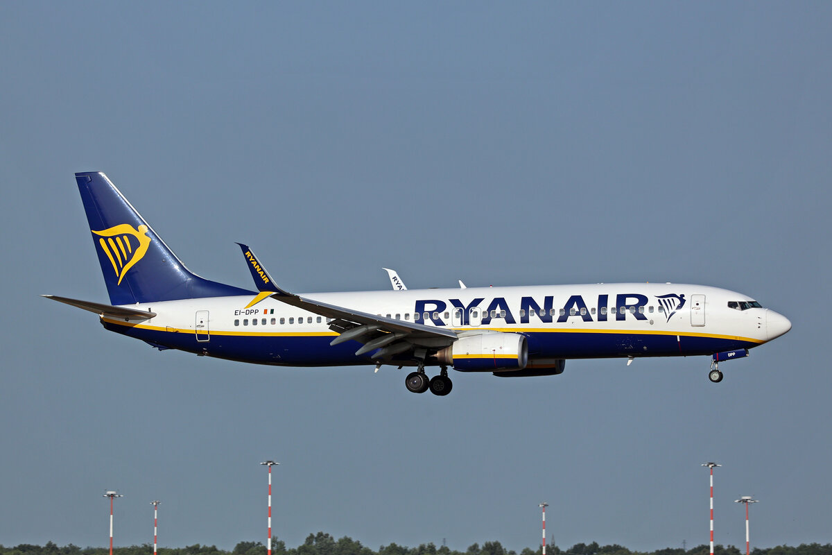EI-EKR, Boeing 737-800, von Ryanair, aufgenommen beim Überflug nahe dem pôle d'échange Howald, in der Stadt Luxemburg. 12.09.2025