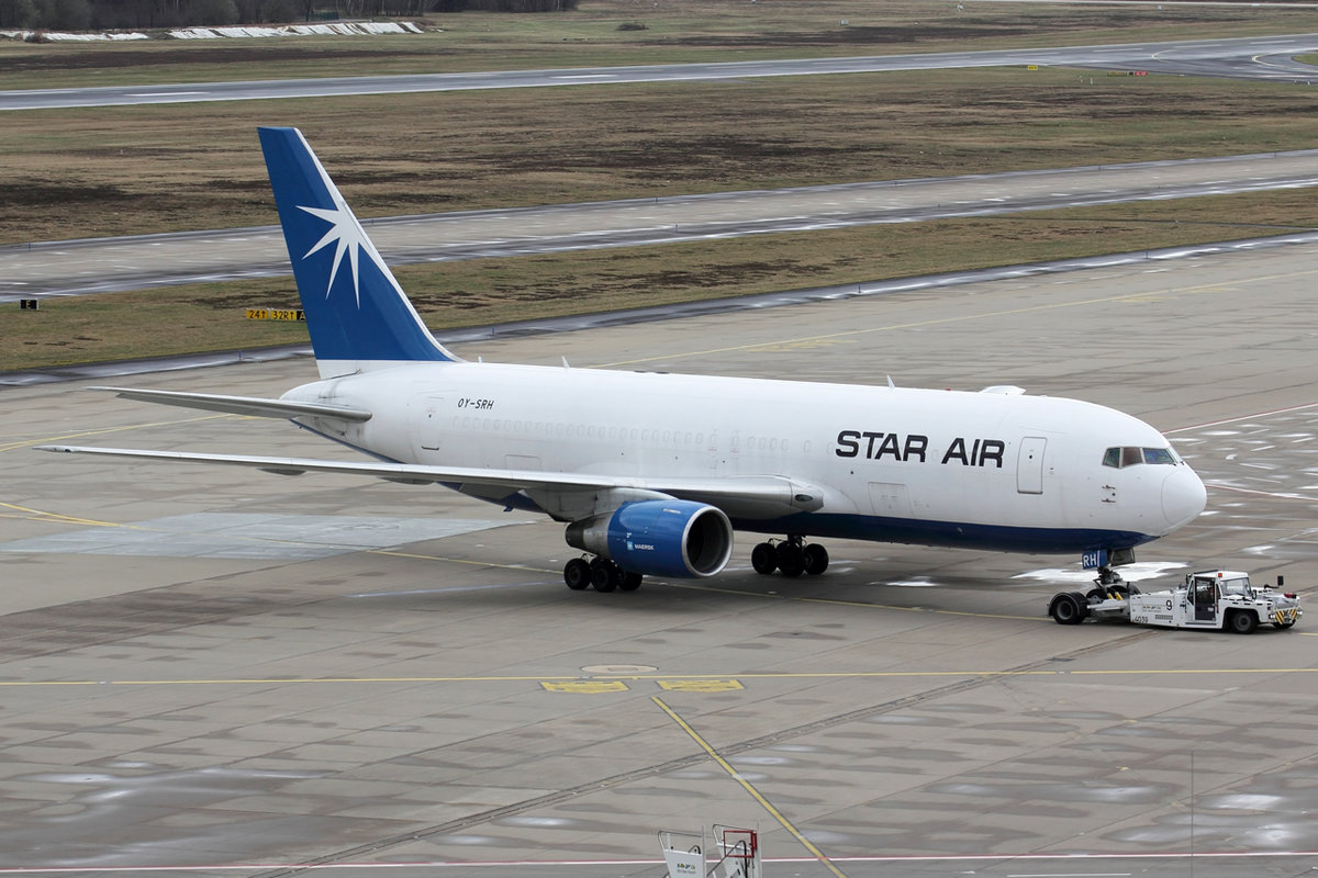 Star Air Boeing 767-232F OY-SRL auf der Parkposition am Flughafen Köln/Bonn 23.6.2017
