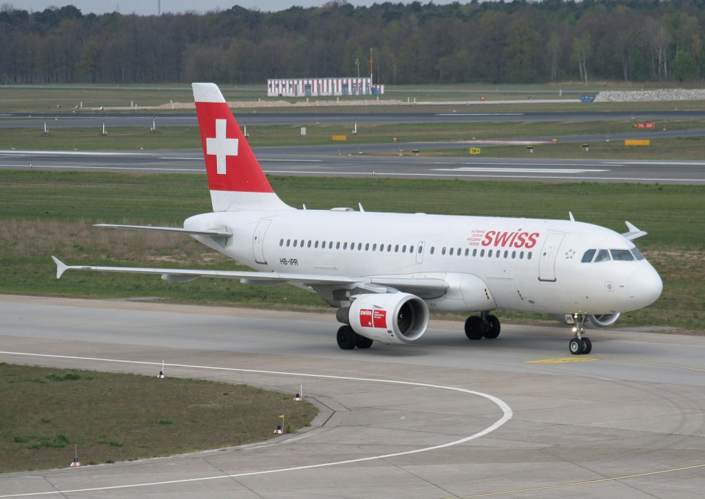 Swiss A 319-112 HB-IPY bei der Ankunft in Berlin-Tegel am 01.05.2010
