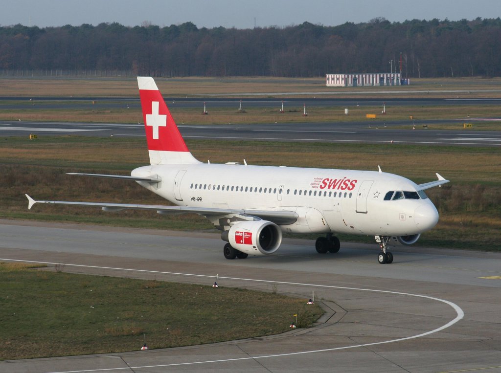 Swiss A 319-112 HB-IPR bei der Ankunft auf dem Flughafen Berlin-Tegel am 21.11.2009