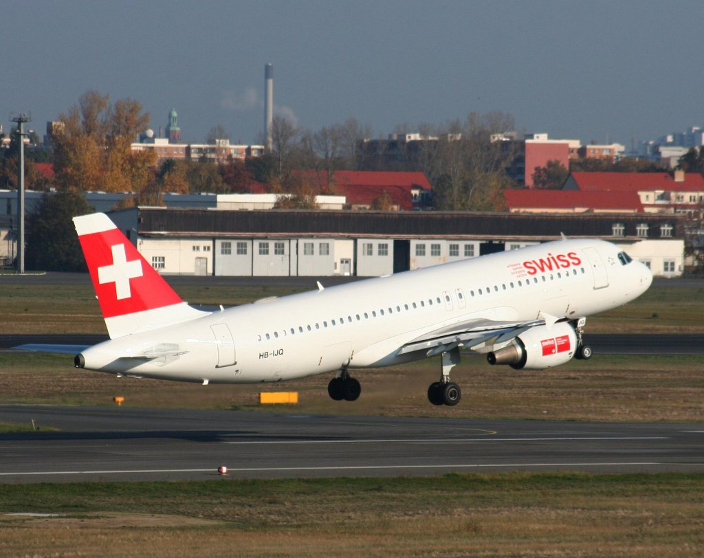 Swiss A 320-214 HB-IJP bei der Abkunft auf dem Flughafen Berlin-Tegel am 12.09.2009