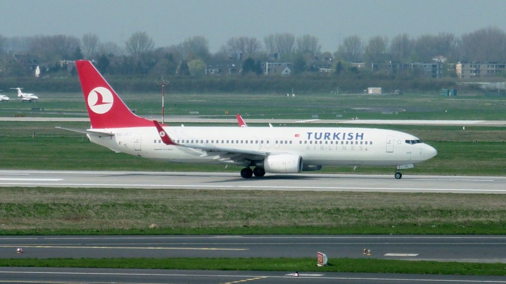 B 737-800, TC-JFF, der Turkish Airlines auf dem Weg zur Startbahn in Düsseldorf - 07.06.2010