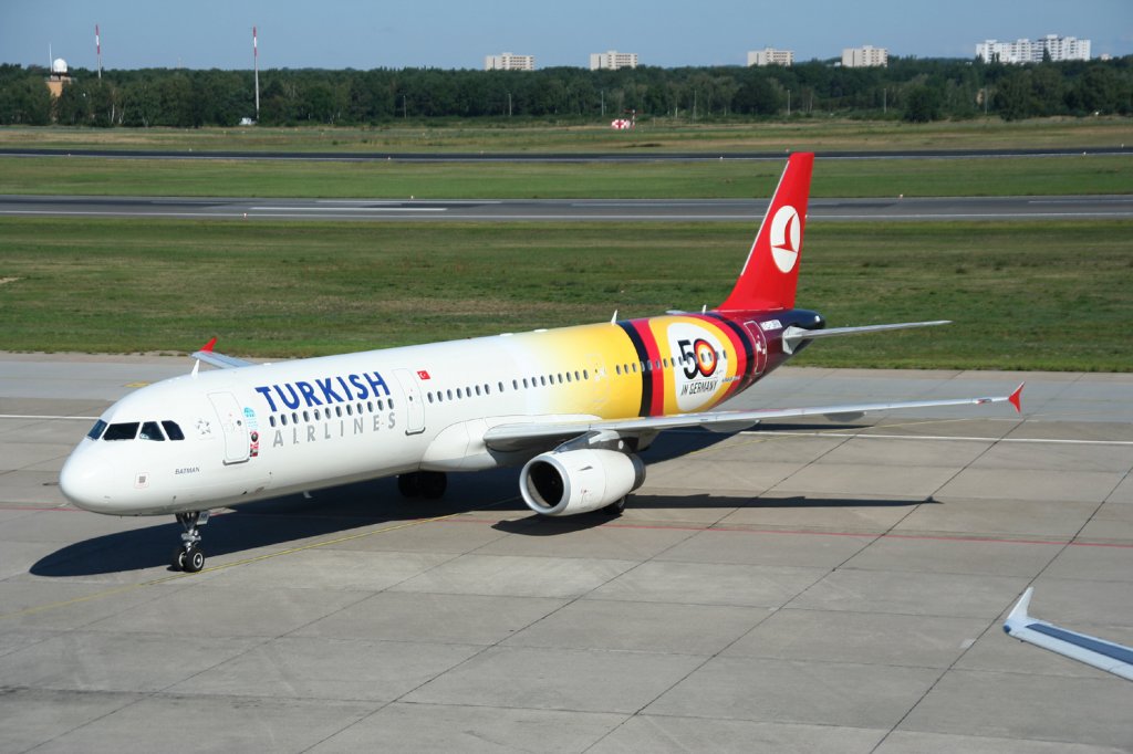 Turkish Airlines A 321-231 TC-JRK in Sonderbemalung bei der Ánkunft in Berlin-Tegel am 05.09.2010