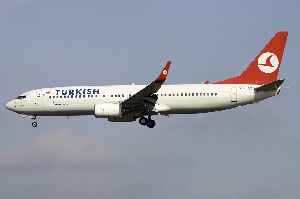 Eine Boeing B 737-8F2 der Turkish Airlines mit der Kennung TC-JFP (Taufname Amasya) aufgenommen am 05.06.2010 auf dem Flughafen Basel-Mülhausen-Freiburg (BSL) Frank Tribull
