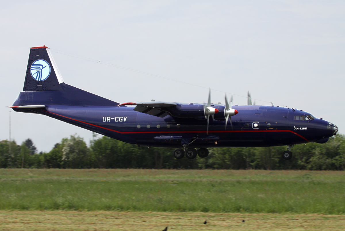 Ukraine Air Alliance An-12 UR-CGV bei der Landung auf 03 in MST / EHBK / Maastricht am 14.05.2016