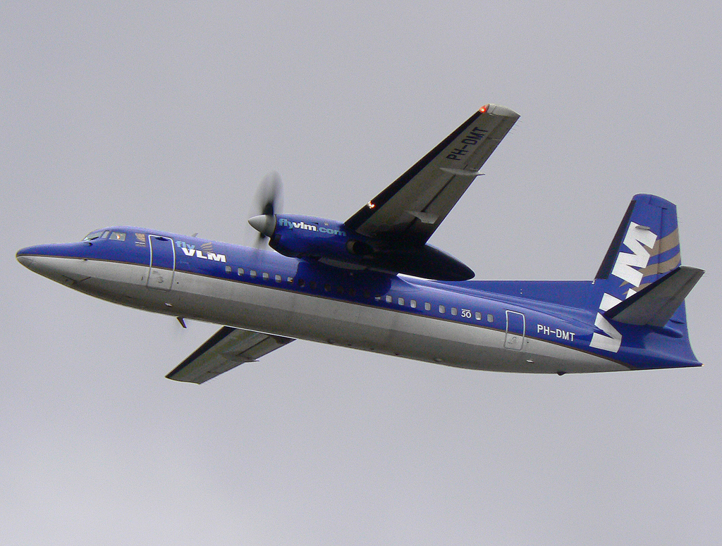 VLM F-50 PH-DMT nach dem Takeoff auf 24 in AMS / EHAM / Amsterdam am 12.07.2007