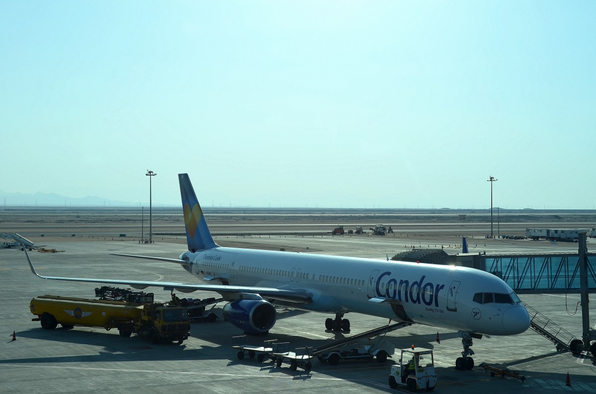 Die Condor Boeing 757-300 D-ABOC am Gate des Airports Hurghada am 06.07.15