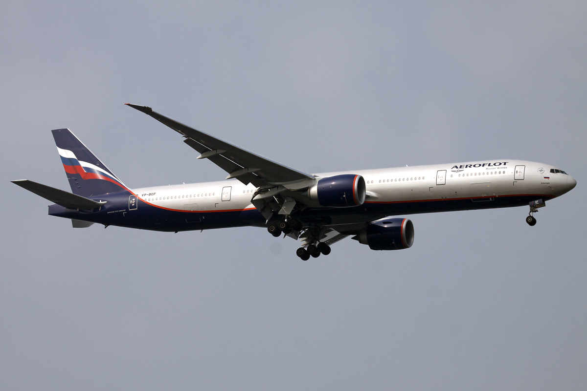 Aeroflot B777-300 VP-BGF im Anflug auf 36L in PEK / ZBAA / Peking 29.08.2014