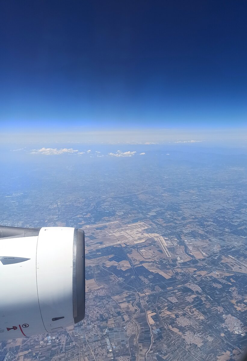 Der Flughafen Peking (PEK-ZBAA) am 6.5.2025. Fotografiert aus dem A 340-300 der Swiss Air, HB-JMH.