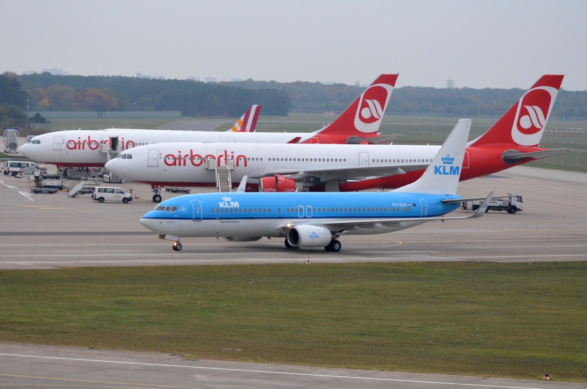 D-ABKI Air Berlin Boeing 737-86J (WL)  am 14.10.2014 in Tegel zum Gate