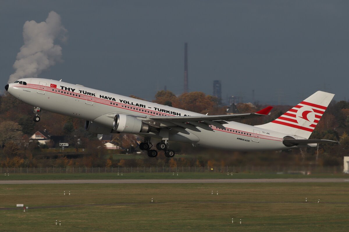 Turkish Airlines Airbus A330-223 TC-JIS bei der Landung in Düsseldorf 19.7.2025
