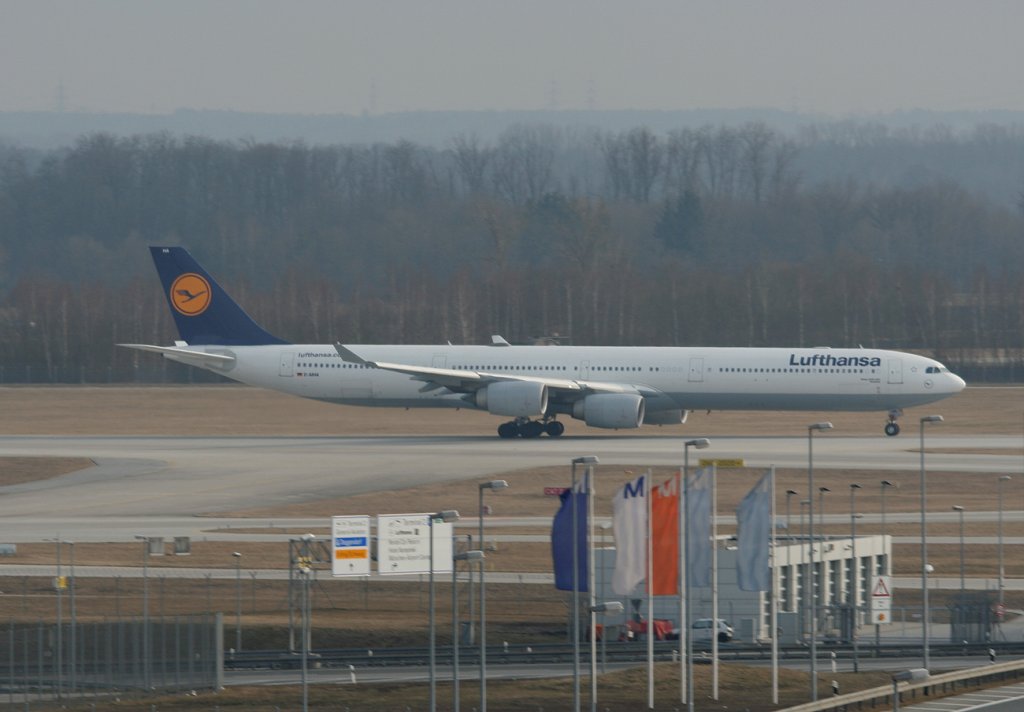Lufthansa A 340-642 D-AIHA "Nürnberg"an einem sehr trüben 10.03.2011 auf dem Flughafen München