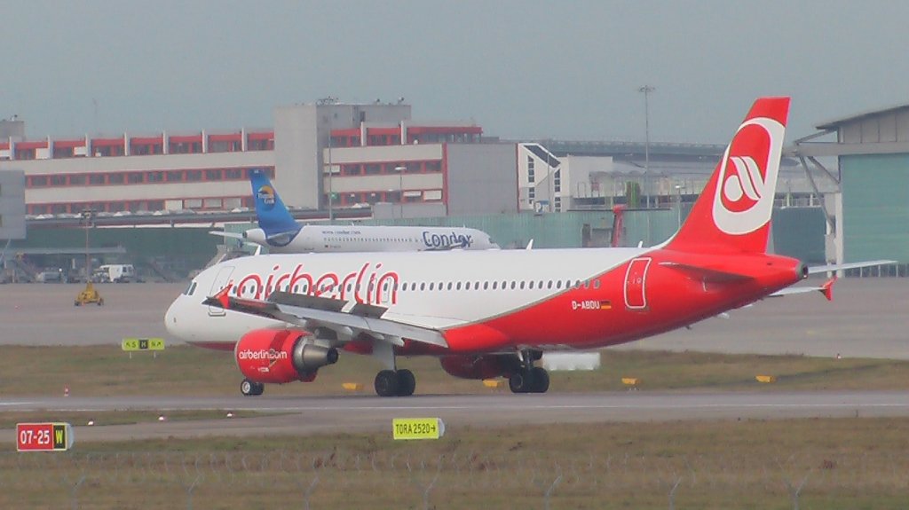 Airbus A320 der Air Berlin nach der landung auf dem Stuttgarter Flugafen