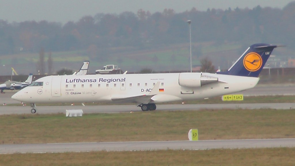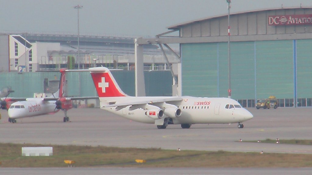 Ein Avro RJ100 von SWISS International Air Lines beim Taxiing in Stuttgart