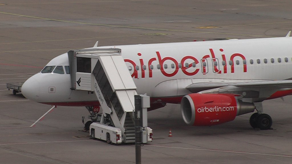 Dieser Air Berlin-Airbus A319 hat erstmal Pause: Er kam gerade aus Berlin-Tegel nach Stuttgart. In ca. 45 Minuten geht's wieder zurück.