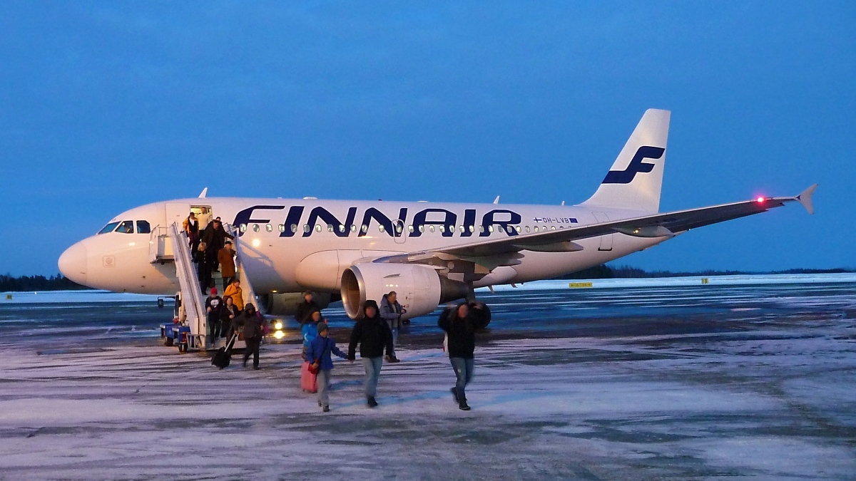 Finnair Airbus A319-112, OH-LVB, auf dem Flughafen Kuopio, Finnland, am 4.3.13