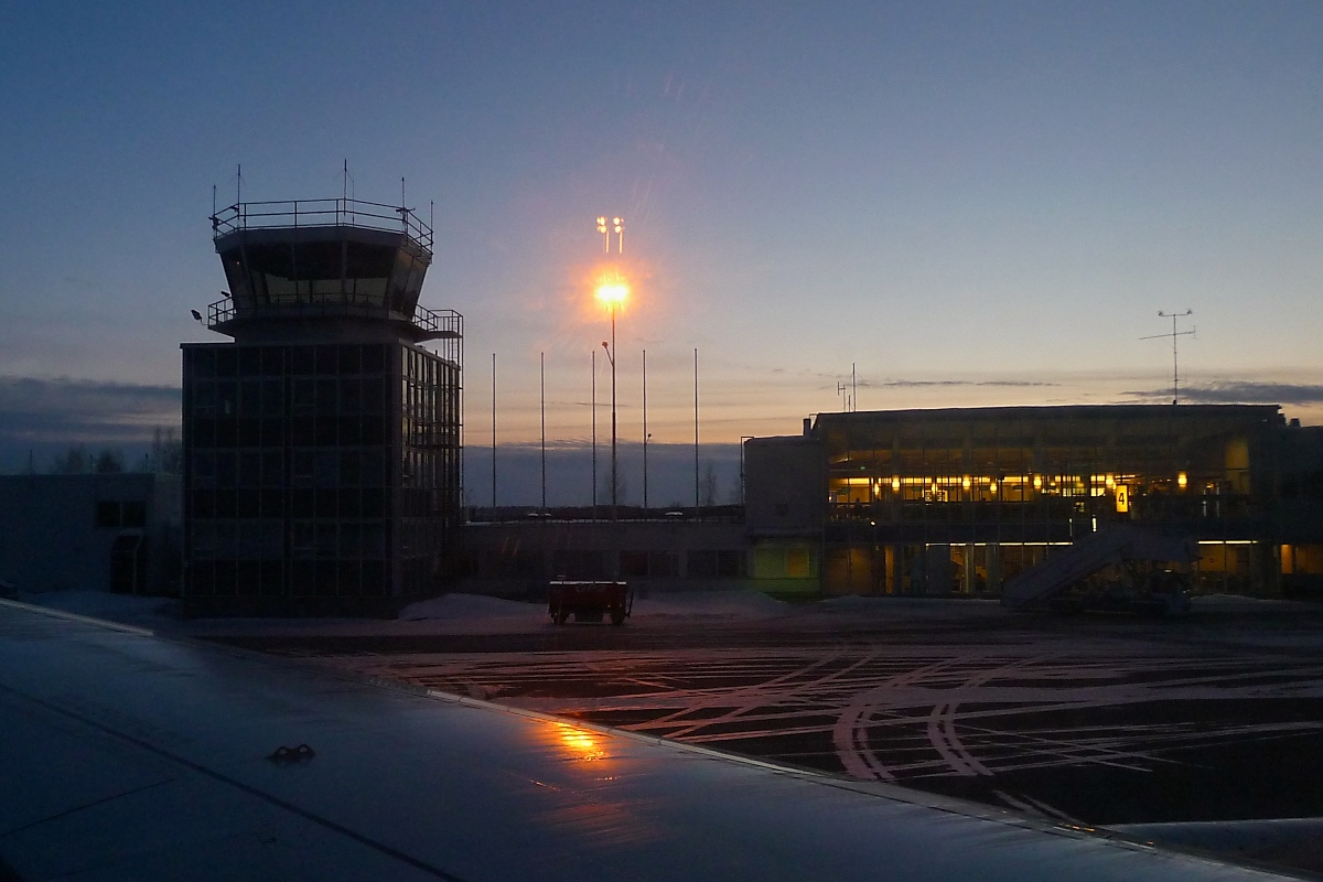 Tower und Terminal des Flughafen Kuopio, Finnland, am 4.3.13