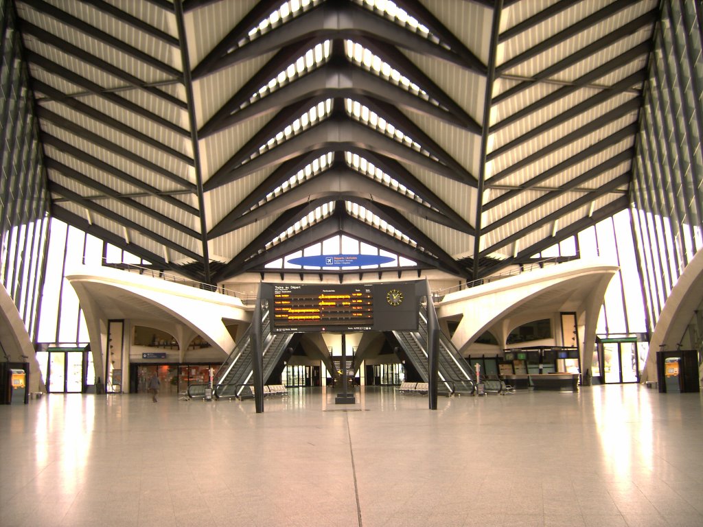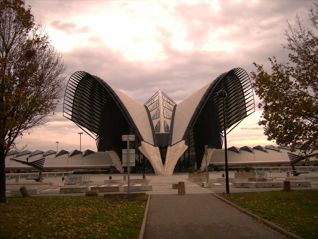 Architektonisch toller Anblick des Eingangsbereiches des Flughafens Lyon, ist aber nicht viel los,19.11.2006