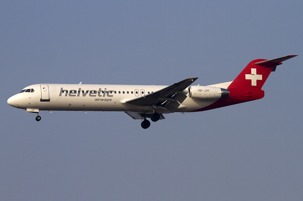 Helvetic Airways, HB-JVF, Fokker, F-100, 13.02.2011, LYS, Lyon, France