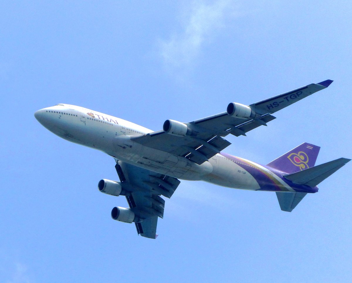 HS-TGP, Boeing 747-4D7, Thai Airways nach abgebrochener Landung über dem Denpasar Intrnational Airport (DPS) am 6.10.2017