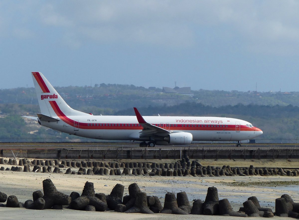 PK-GFN, Boeing 737-86N(WL), Garuda Indonesia (Retro), auf dem Weg zum Start in Denpasar (DPS) am 6.10.2017