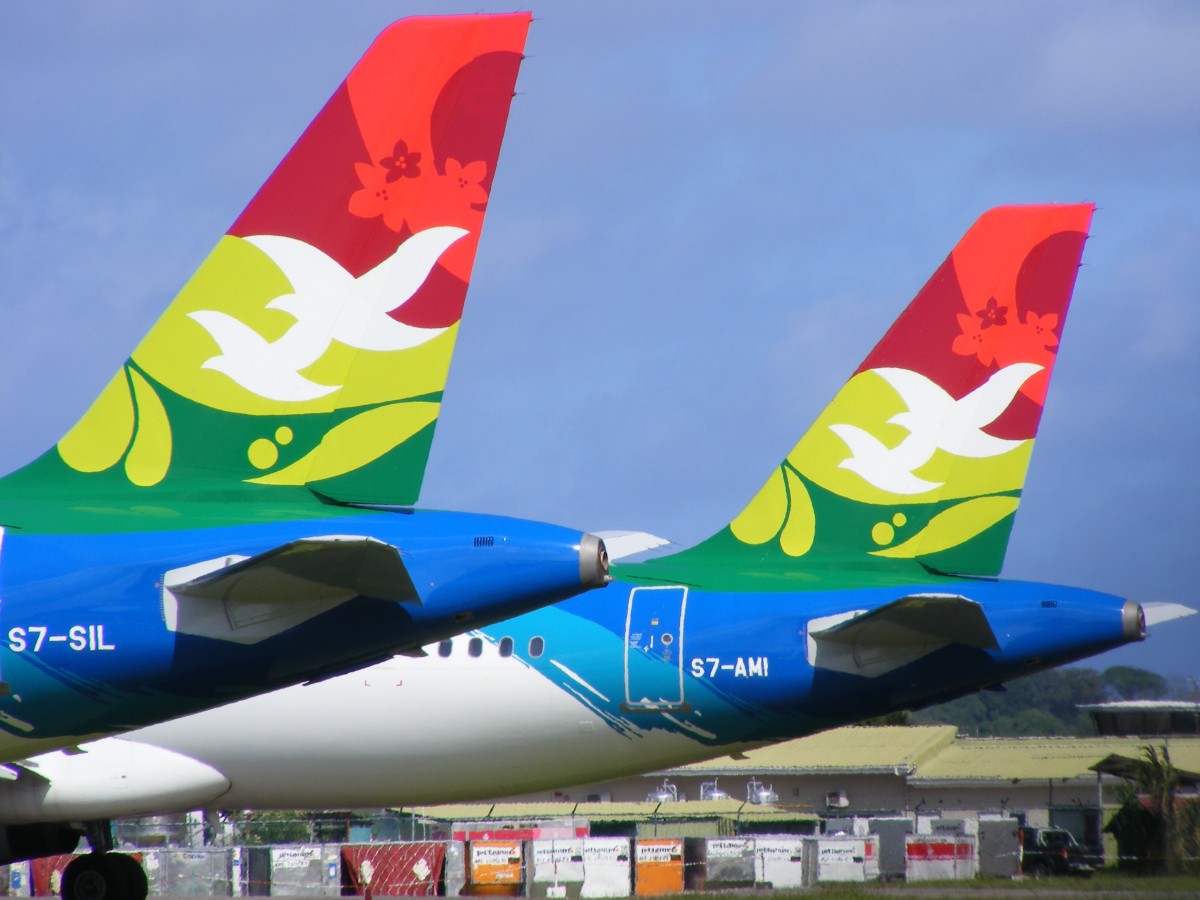 Air Seychelles, S7-AMI und S7-SIL, Airbus A 320 (Seitenleitwerk/Tail), Seychelles International Airport (SEZ), 1.10.2015