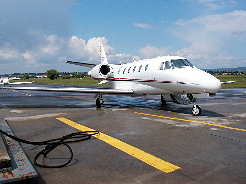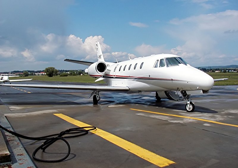 Cessna 560 XL Citation, OE-GME, an der Tankstelle in Hassfurt - Sommer 2002