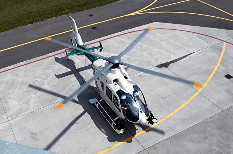 EC-135 Polizeihubschrauber (Bayern) vor der Tankstelle in Hassfurt - Juni 2002