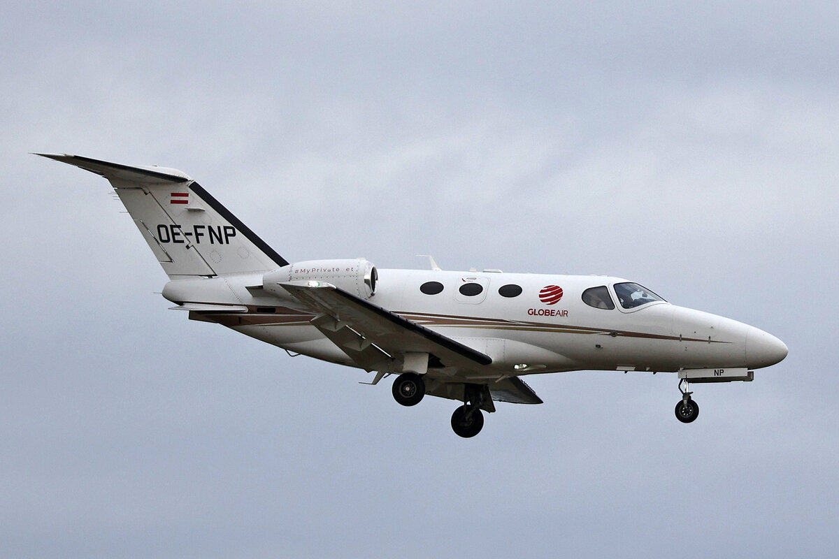 Globe Air OE-FZA Cessna Citation 510 Mustang at Antwerp Airport.