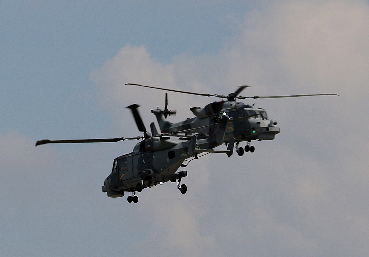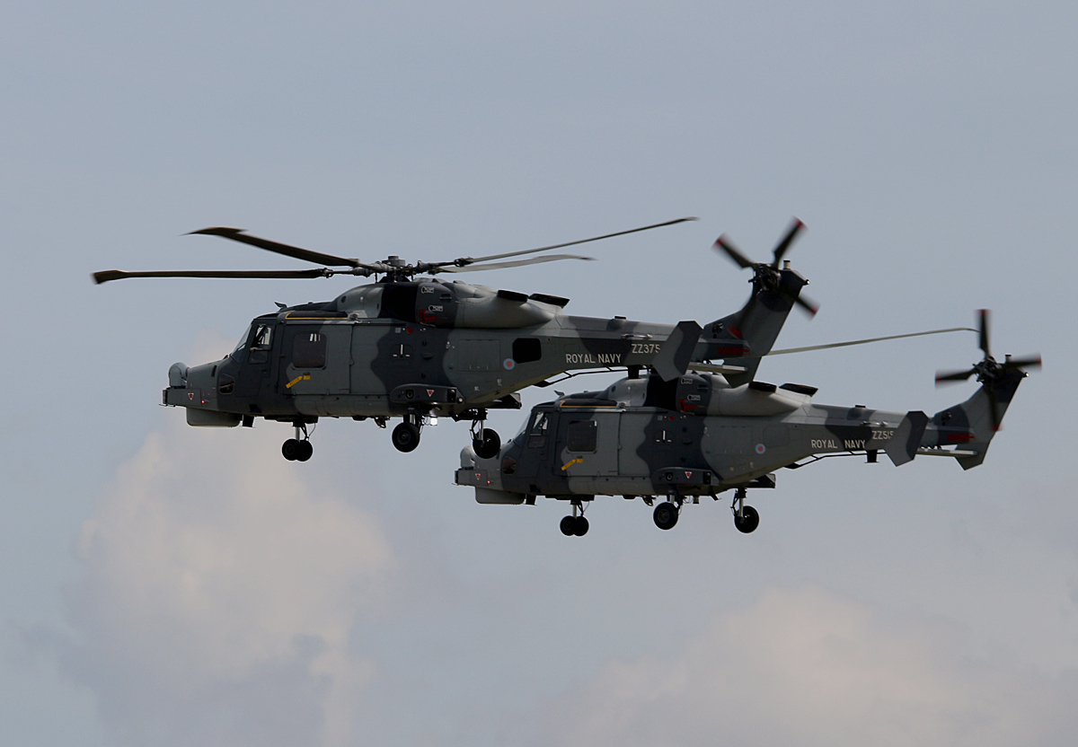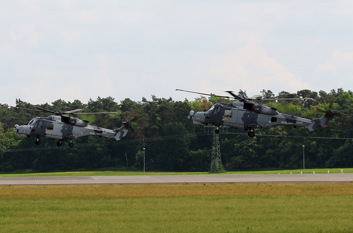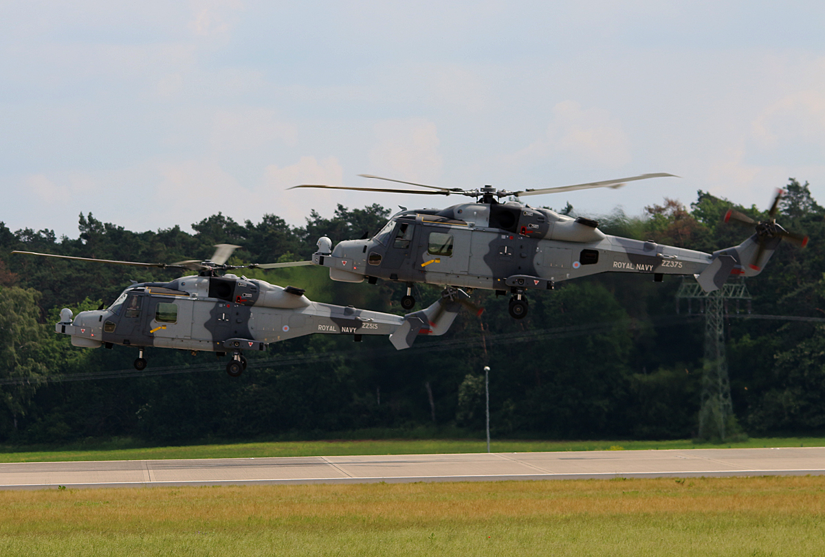 Die zwei Royal Navy Agusta-Westland AW-159 Wildcat ZZ375 und ZZ515 auf der ILA Berlin am 04.06.16
