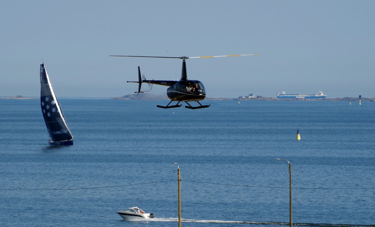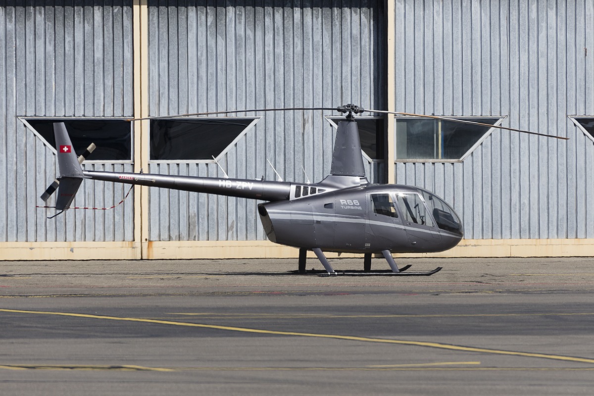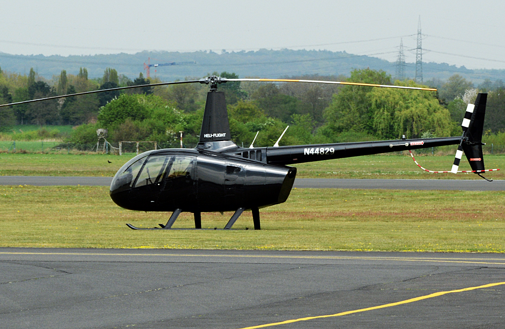 Robinson R 66 der Fa. Heli-Flight, N44829 in Bonn-Hangelar. Der R 66 ist fast baugleich mit dem R 44. Hauptunterschied ist die eingebaute Turbine, anstatt des Kolbentriebwerkes wie beim R 44. - 10.04.2014 Rolf Reinhardt