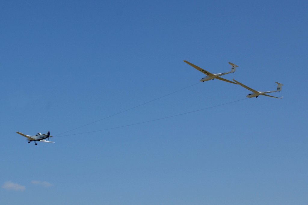 Privat, D-EAUI, Piper, PA-25 Pawnee (mit D-6507 & D-2465 im Doppelschlepp), 27.05.2012, EDLG, Goch (Asperden), Germany