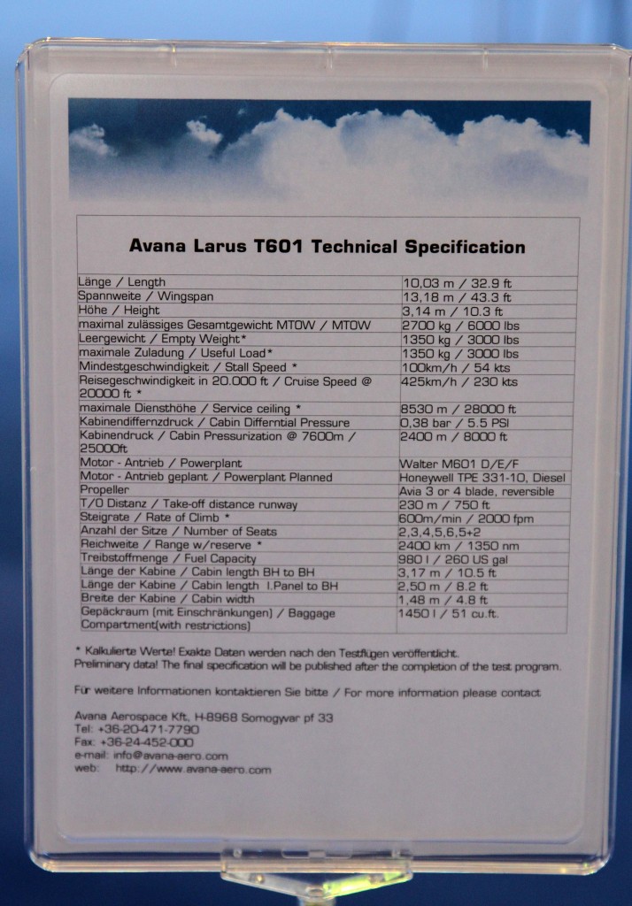 ohne Reg.-Nr., Avana, Larus T-601 (Techn. Beschreibung), 24.04.2013, Aero 2013 (EDNY-FDH),Friedrichshafen, Germany