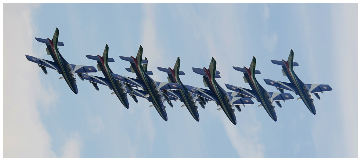 Start einer Saab-105OE-Formation des österr. Bundesheer am 3.9.2016 anlässlich der Airpower16 in Zeltweg. Interessantes Detail, bis auf die Maschinen mit Sonderlackierung ist auf keiner anderen österr. Saab 105 eine Flugzeugkennung sichtbar. Hanspeter Reschinger