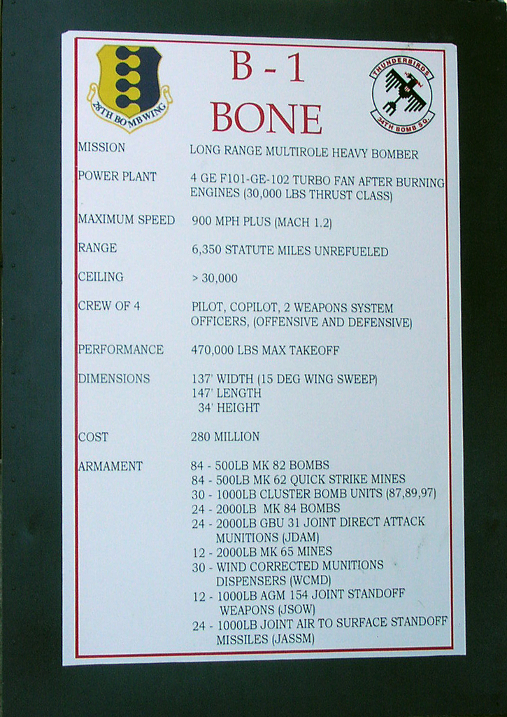 Typentafel der USAF für den Bomber Boeing B-1 - Oshkosh 29.07.2006