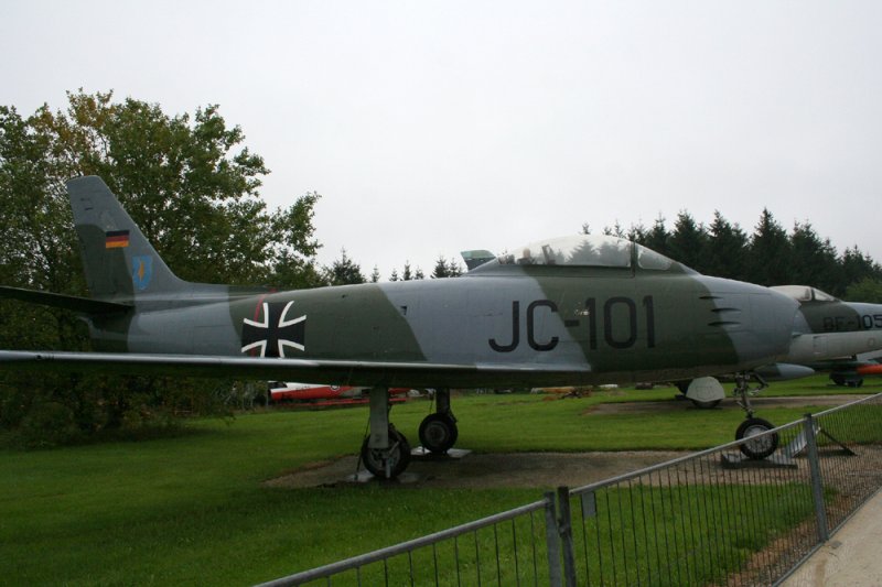 Bundeswehr North American/ Canadair F 86E/CL 13B "Sabre" JC 101 in der Luftfahrtausstellung bei Hermeskeil im strömenden Regen im Jahr 2007 Frank Maczkowicz