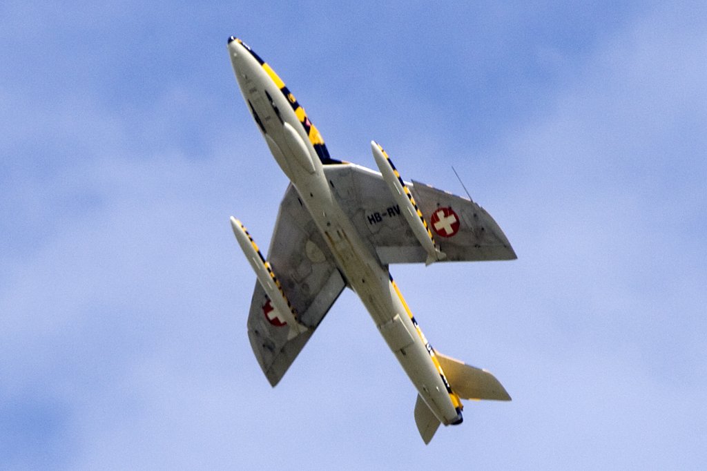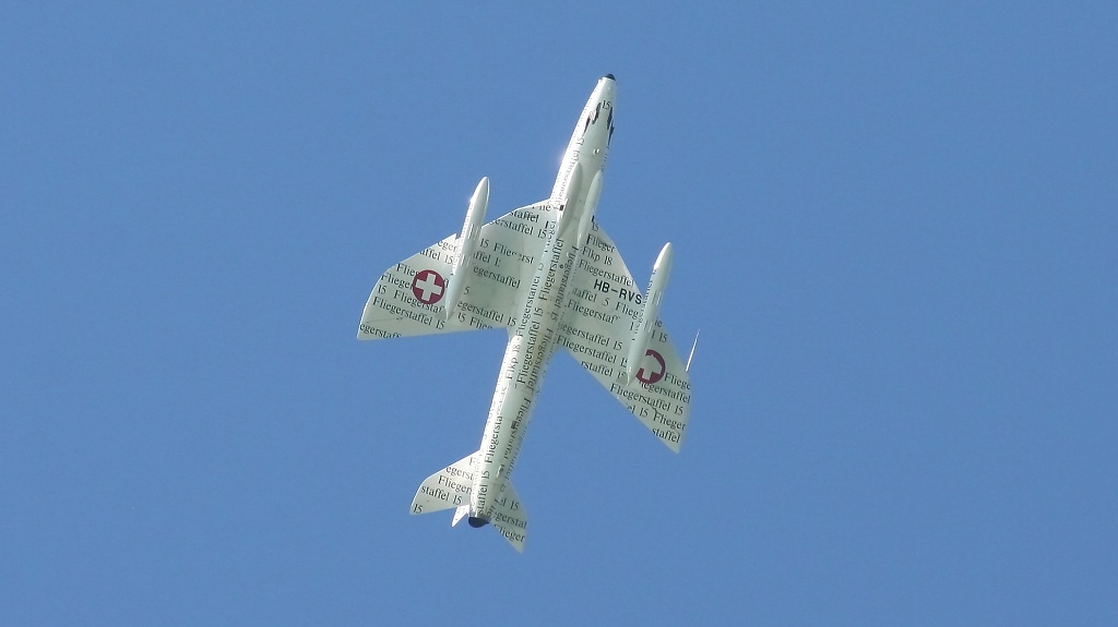 Hawker Hunter HB-RVS bei Flugshow in Interlaken am 11.08.2012.