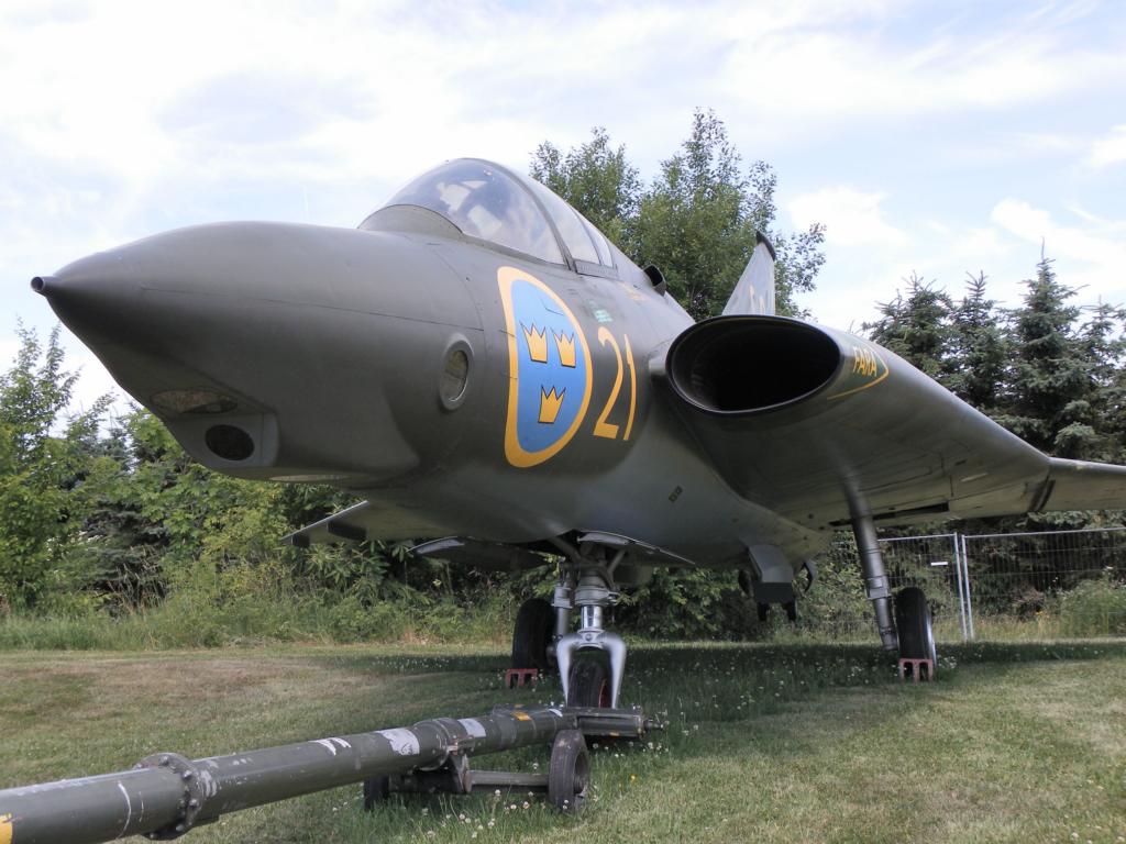 Saab J35 Draken in Frontansicht. Im Static Display anlässlich des 30jährigen Jubiläums der Canadian Air Force Base Baden-Söllingen. Aufnahme aus dem Juni 1983. Heinz Haege