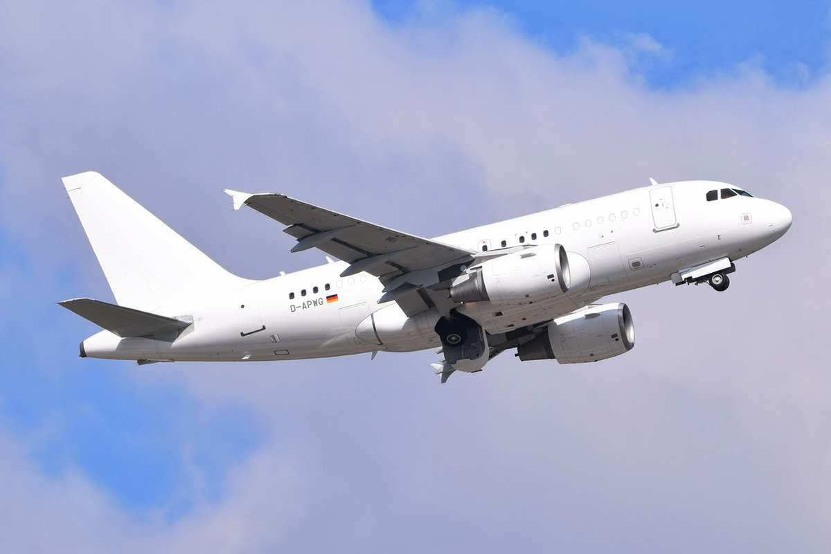Mid East Jet (Saudia Arabia) Airbus A318-100 CJ HZ-AS99 im Landeanflug auf den Airport Hamburg Helmut Schmidt am 06.07.17 anlässlich des G20-Gipfels.